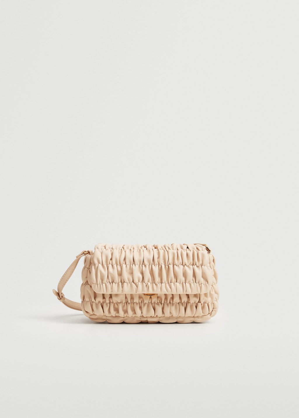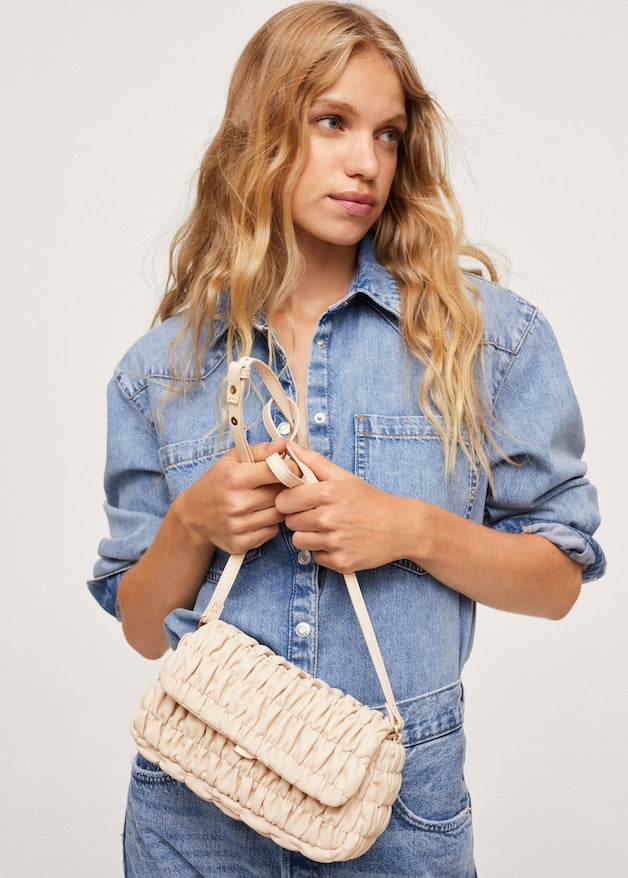 Gathered details. Small. Long adjustable strap. Inner pocket. Inner lining. Metallic clip fastening.
