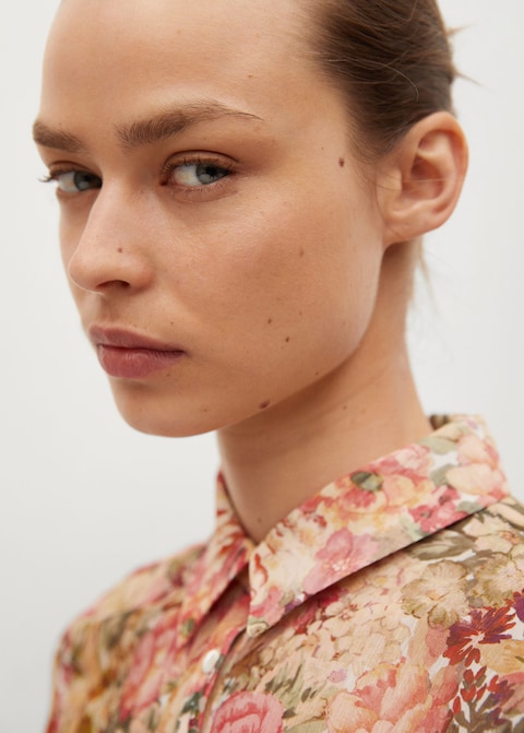 Flowy fabric. Floral print. Maxi dress design. Flared design. Midi design. Lapel-collar. Long sleeve. Elastic cuffs. Loops. Removable belt. Button fastening on the front section. Party collection.