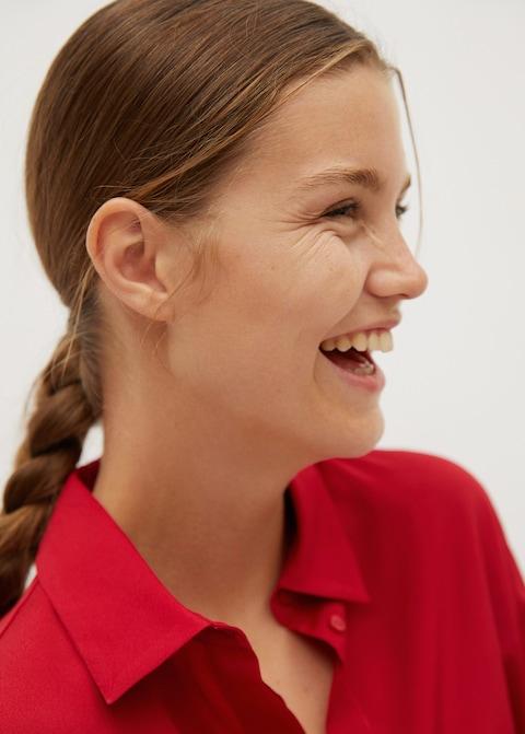 Shirt-style. Midi design. Straight design. Classic collar. Long sleeve. Buttoned cuffs. Removable belt. Concealed button fastening.