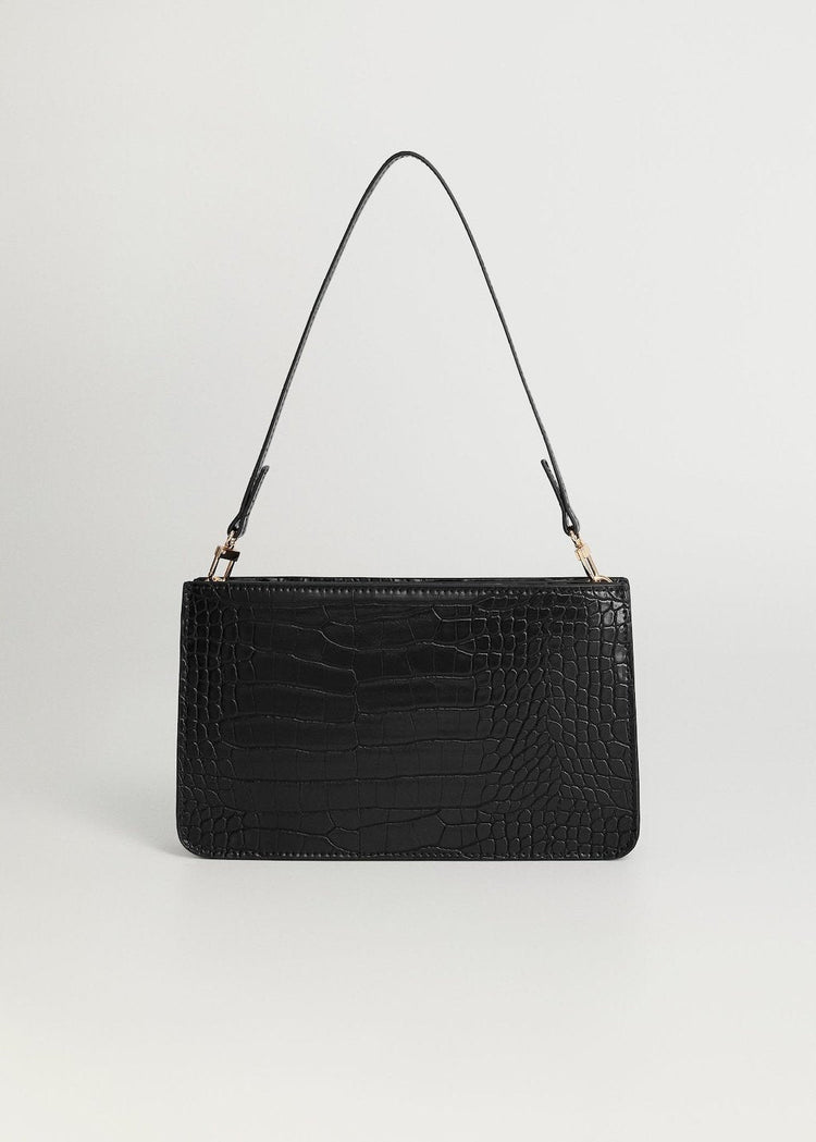 Crocodile effect. Double strap. Short strap. Long adjustable strap. Dual compartment. Zip fastening. Metallic details.