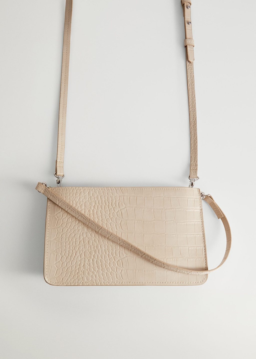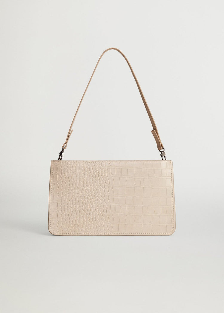 Crocodile effect. Double strap. Short strap. Long adjustable strap. Dual compartment. Zip fastening. Metallic details.