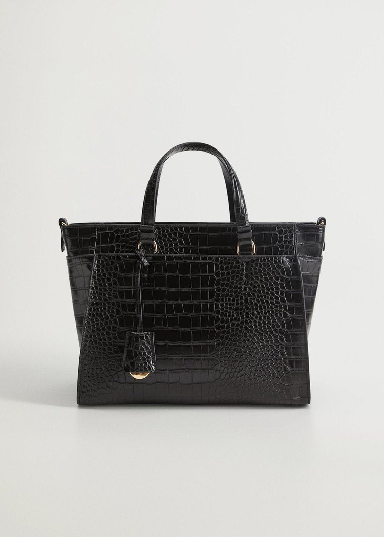 Crocodile skin. Large. Multiple pockets. Short strap. Long adjustable strap. Upper zip fastening. Inner pocket.