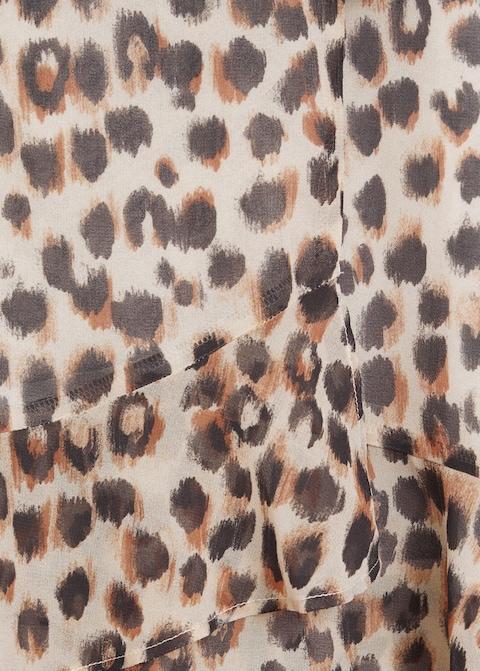 Flowy fabric. Short design. Crossover design. V-neck. Long puffed sleeves. Removable belt at the waist. Semi-flared hem.