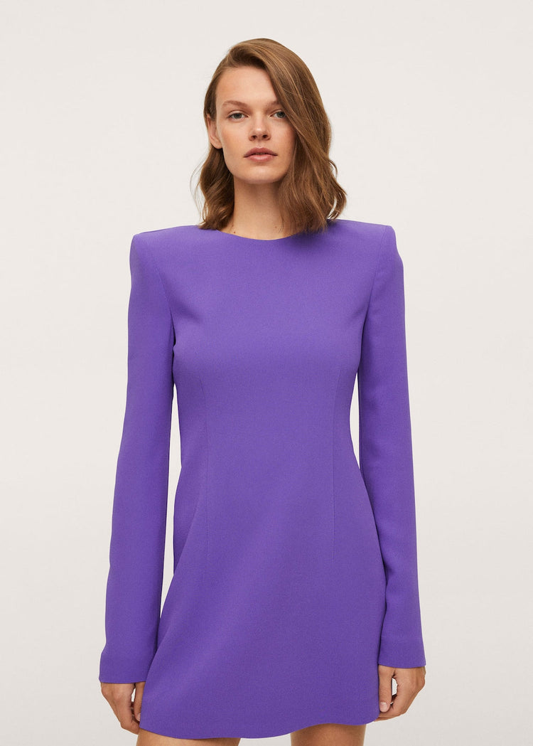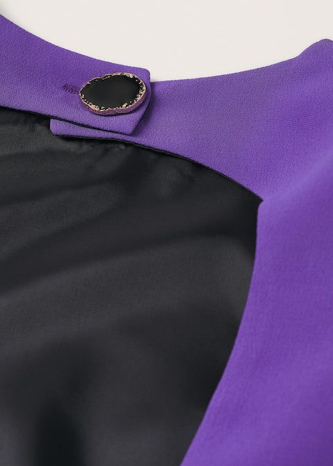 Straight design. Short design. Long sleeve. Structured shoulders. Keyhole detail on the back with button fastening. Inner lining. Light fabric. Rounded neck.
