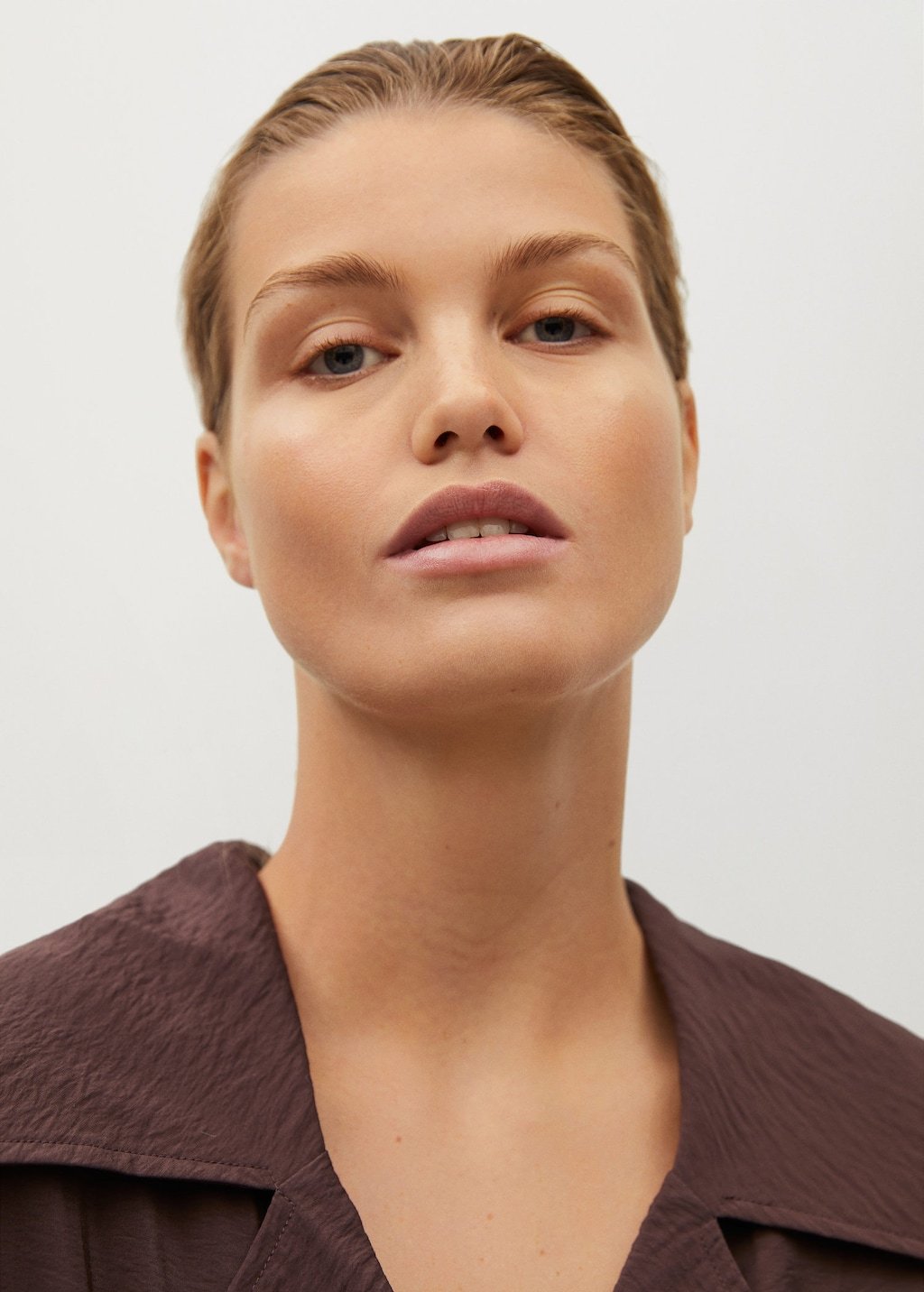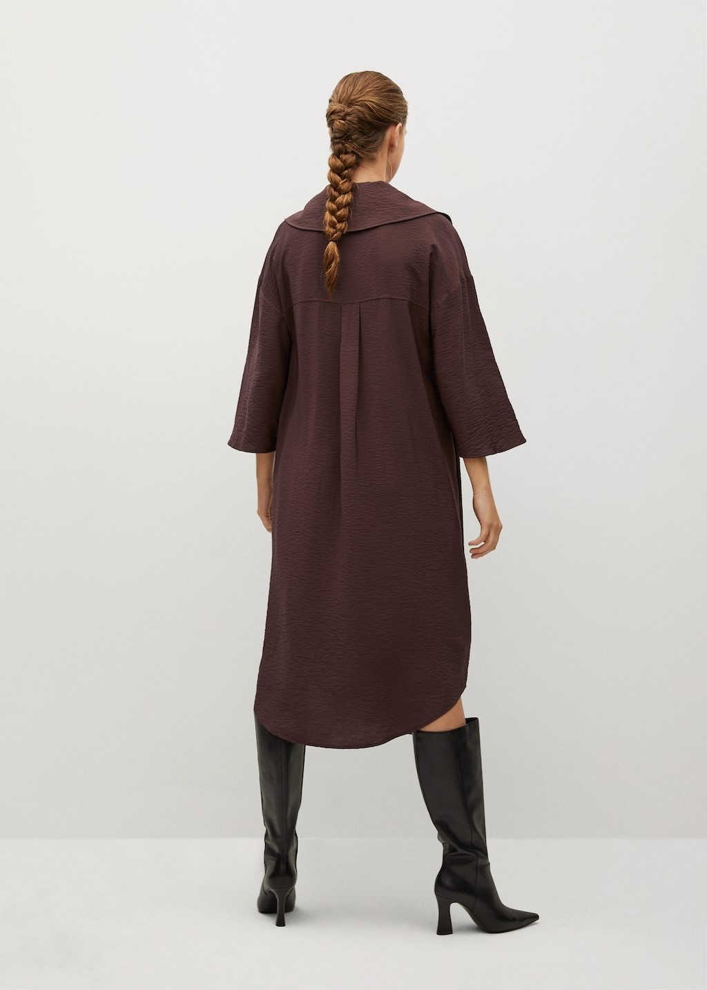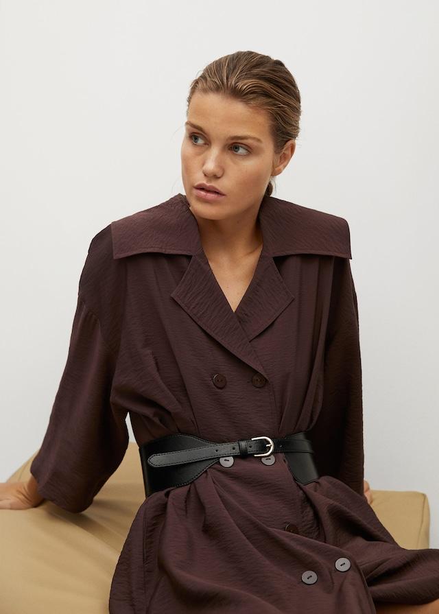Flowy fabric. Flared design. Lapel-collar. Long sleeve. Double button fastening.
