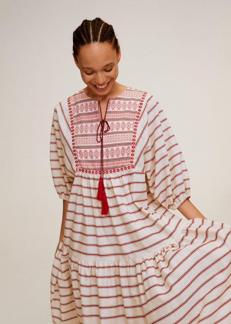 Embroidery striped dress