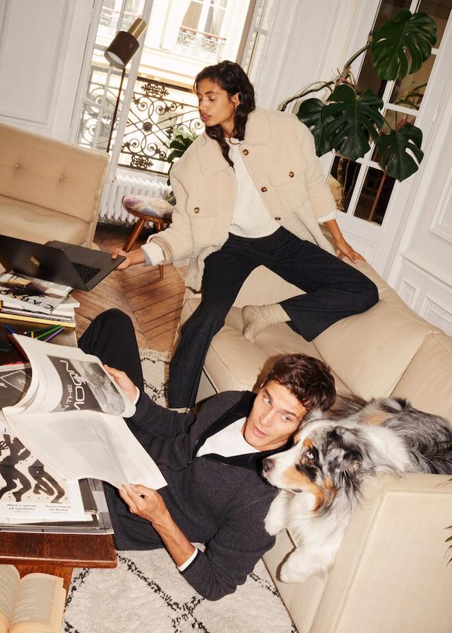 Faux sheepskin fabric. Wide design. Lapel-collar. Long sleeve with buttoned cuffs. Twin buttoned flap pockets at front. Button fastening on the front section.