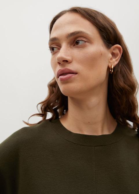 Fine knit fabric. Midi design. Tailored design. Rounded neck. Long sleeve.