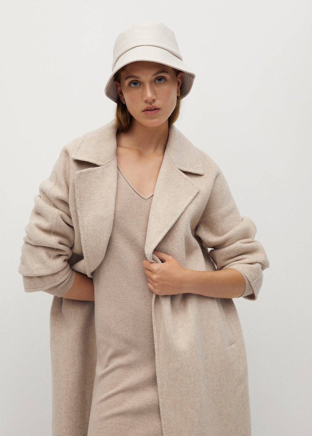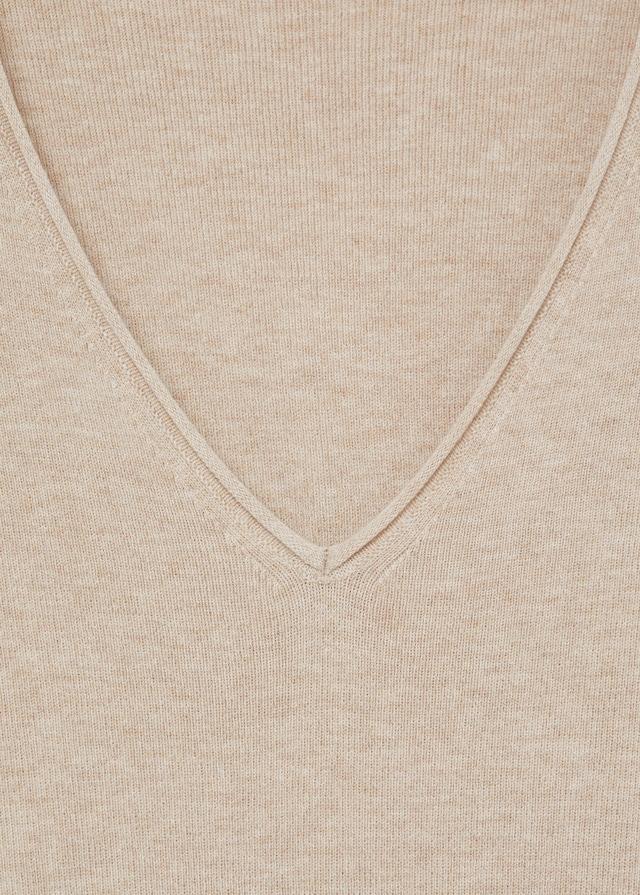 Recycled polyester blend fabric. Fine knit fabric. Midi design. V-neck. Long sleeve. Side slit. Tailored design.