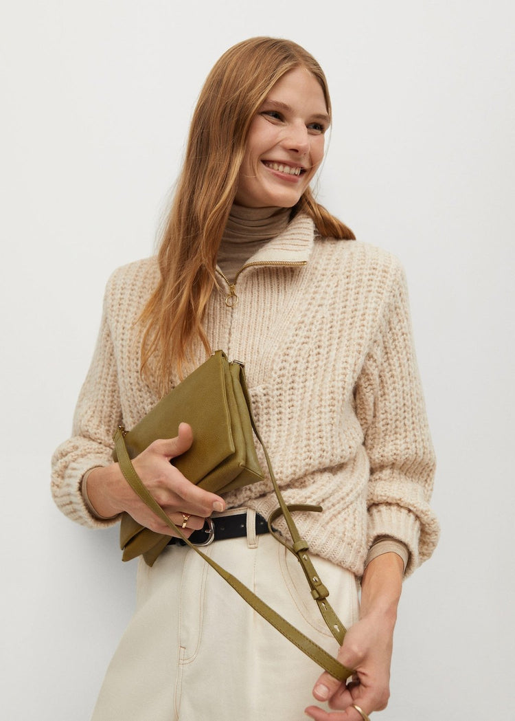 100% bovine leather. Crossbody bag. Long adjustable strap. Front lapel. Upper zip fastening. Metallic clip fastening. Inner lining.