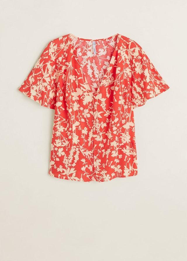Flowy fabric. Floral print. V-neck. Short sleeve. Button fastening on the front section. Lined buttons.