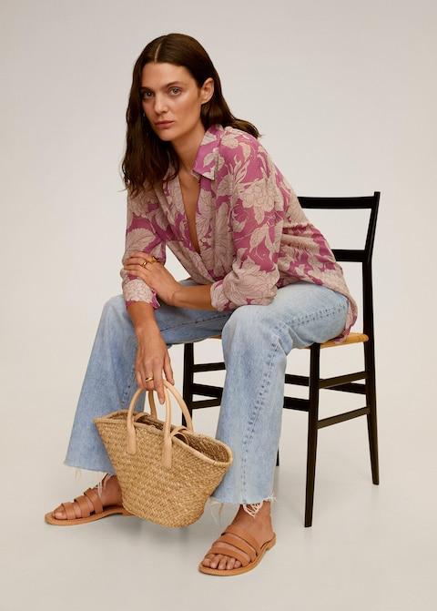 Flowy fabric. Floral print. Classic collar. Long sleeve. Button fastening on the front section.
