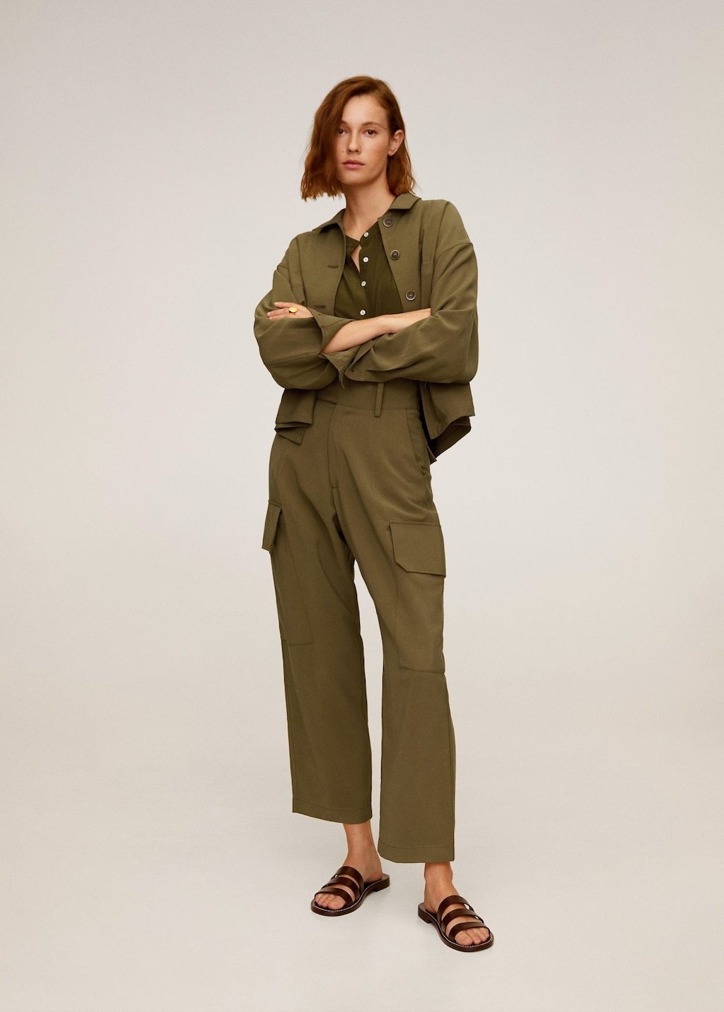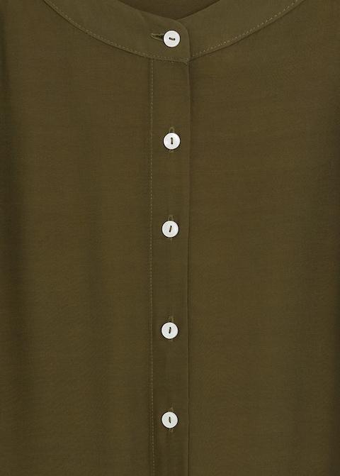 Flowy fabric, mao neckline, long sleeve, buttoned cuffs, button up.