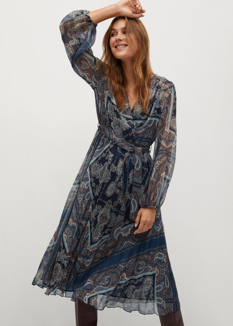 Cupro fabric. Shirt-style. Lapel-collar. Long sleeve with buttoned cuffs. Two patch pockets on the front. Adjustable belt. Button fastening on the front section. Flared design.