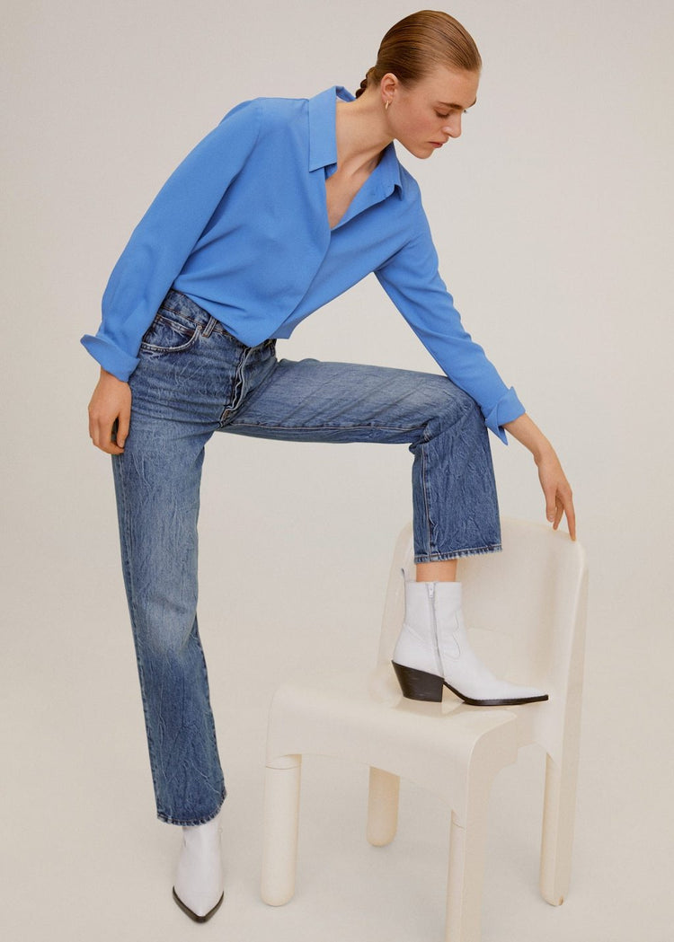 Flowy fabric. Classic collar. Long sleeve. Buttoned cuffs. Button up.