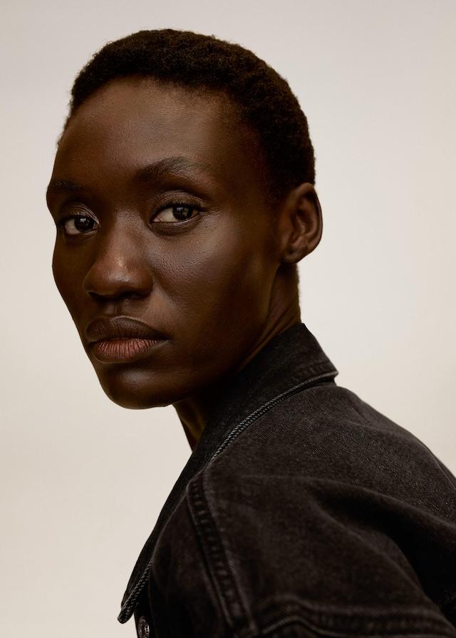 Denim style cotton fabric. Short design. Classic collar. Long sleeve. Two patch pockets on the chest. Button fastening on the front section.