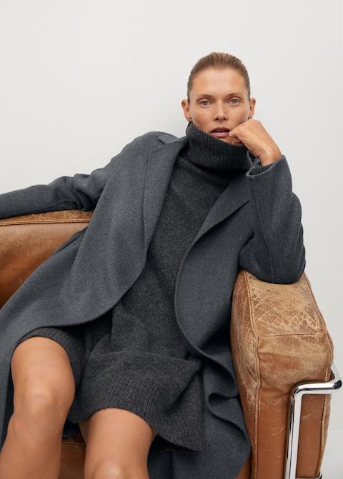 Wool mix fabric. Handmade design. Midi design. Lapel-collar. Lapel with notch. Long sleeve. Lace fastening.