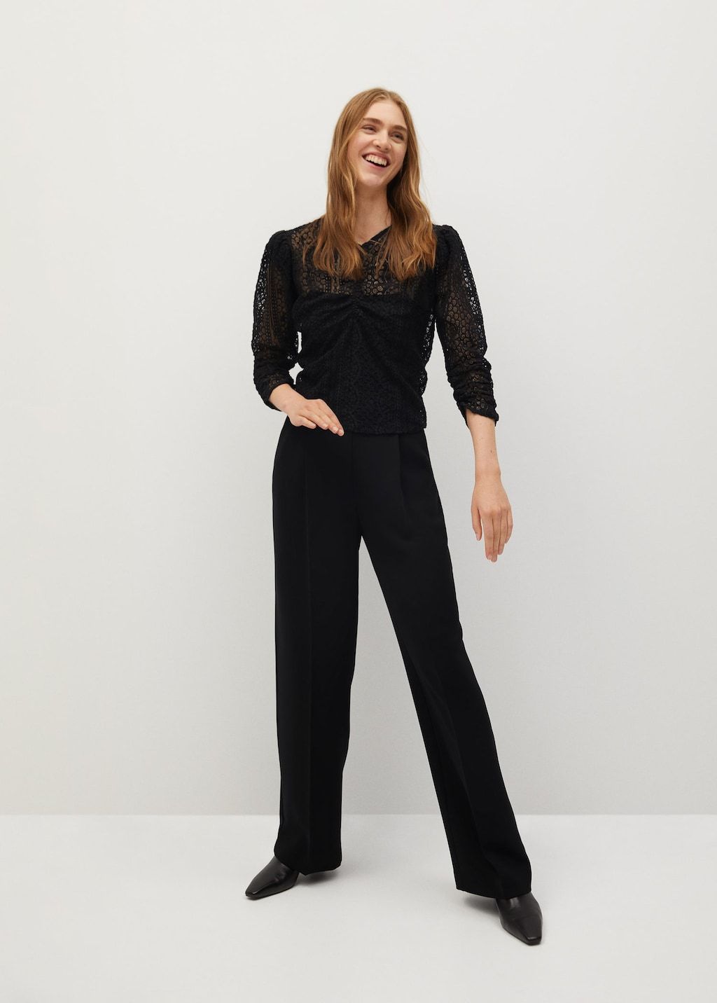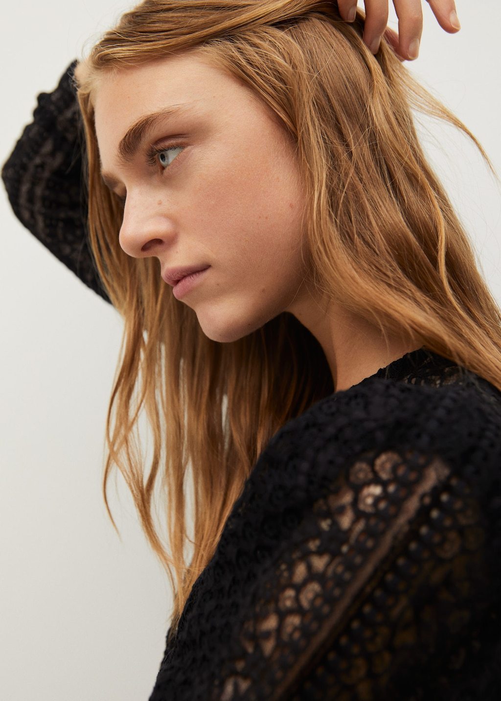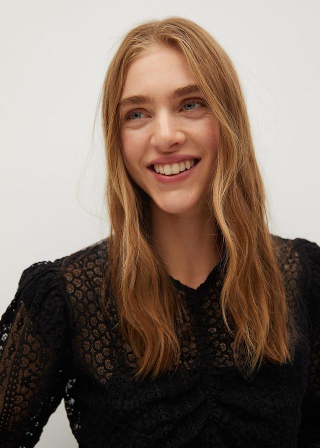 Online Exclusive. Floral design. Lace fabric. V-neck. Long sleeve. Ruched detail on the cuffs. Zip fastening on the back section.