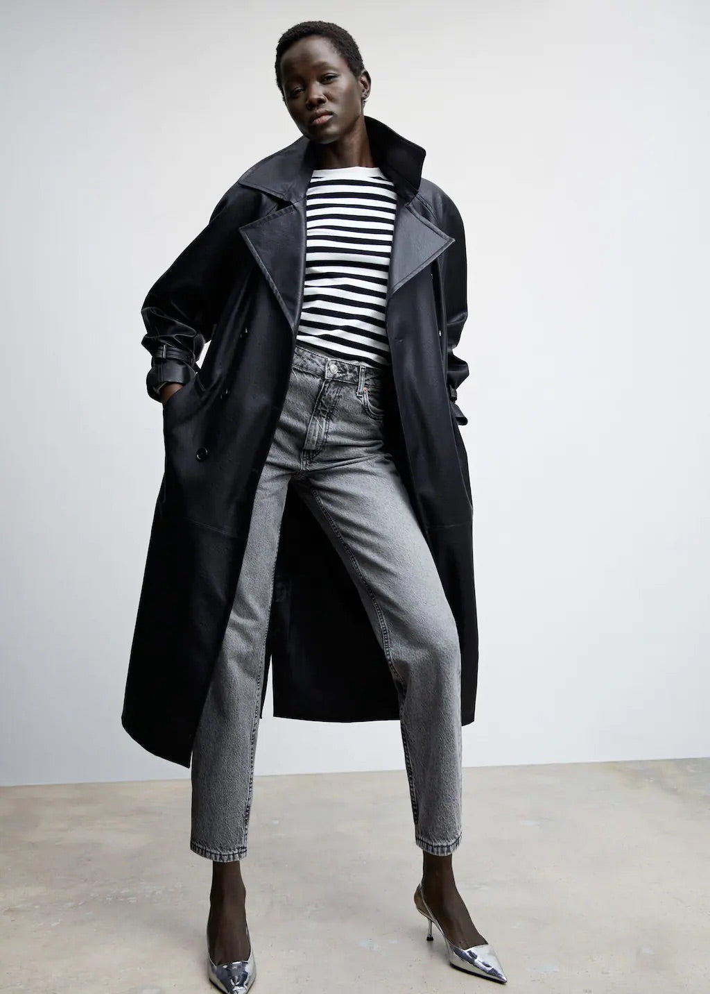 100% Cotton. Recycled cotton-blend fabric. Denim style cotton fabric. Mom-fit. High waist. Five pockets. Loops. Zip and one button fastening. Inseam 70 cm. Fits small to size.