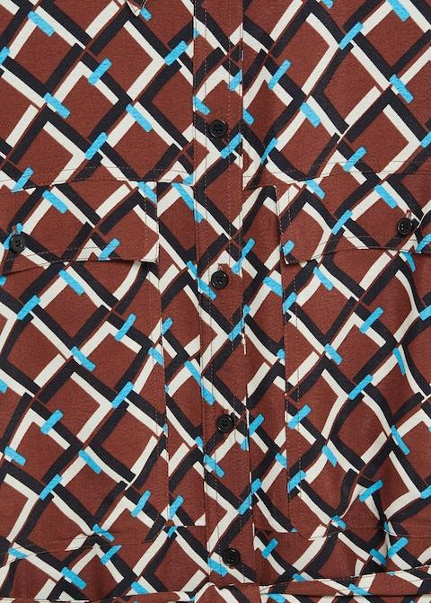 Flowy fabric. Short design. Lapel-collar. Long sleeve with buttoned cuffs. Twin buttoned flap pockets at front. Adjustable belt. Button fastening on the front section.
