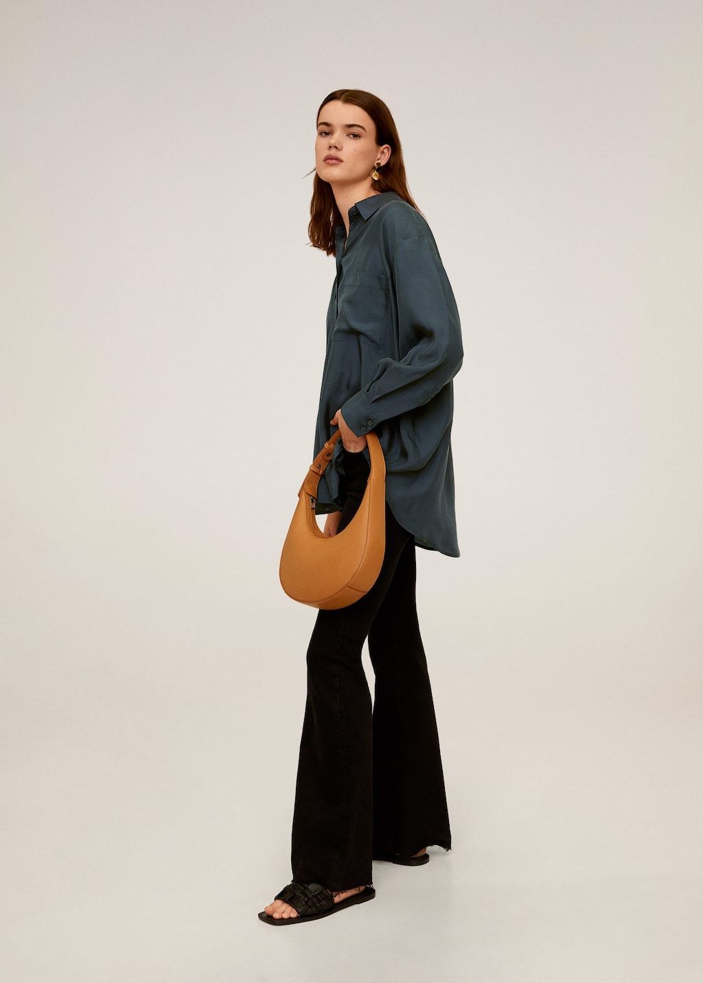 Cupro mix. Flowy fabric. Decorative backstitching. Classic collar. Buttoned pocket with flap on the front section. Long sleeve. Buttoned cuffs. Button up.