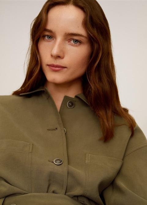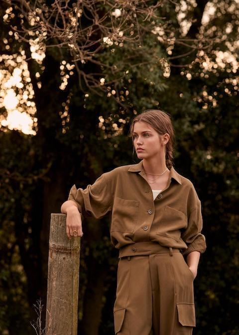 Flowy fabric, classic collar, two patch pockets on the chest, long sleeve, buttoned cuffs, button up.