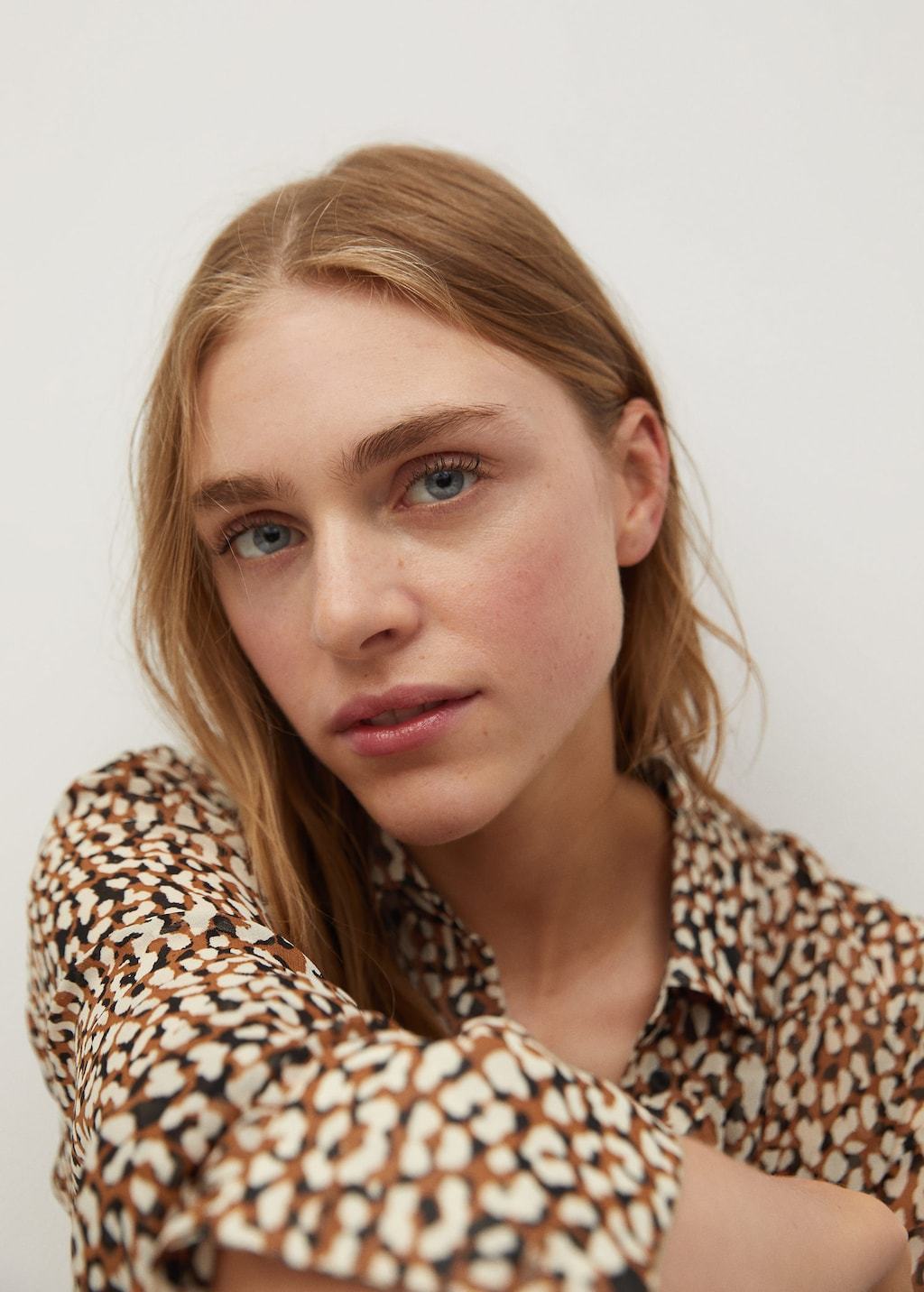Flowy fabric. Sheer fabric. Printed design. Classic collar. Long sleeve. Buttoned cuffs. Concealed button fastening.