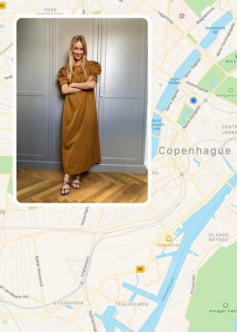 Cotton fabric. Flared design. Rounded neck. Puffed sleeves. Gathered detail on the sleeve. Zip fastening.