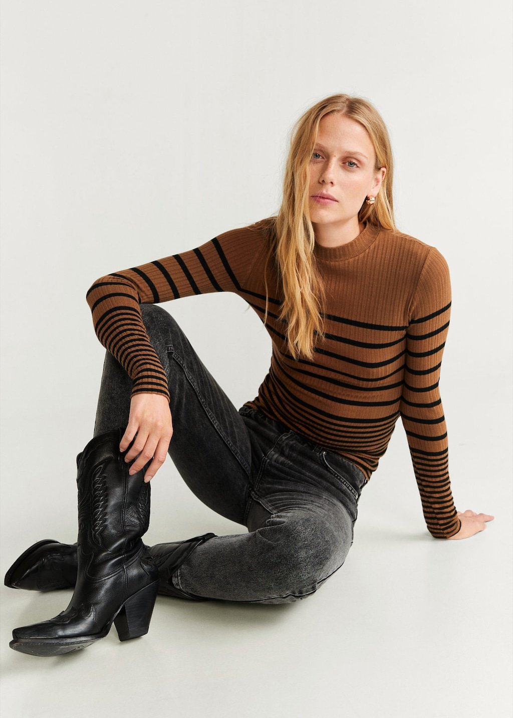 Cable knit fabric. Elastic. Rounded neck. Long sleeve.