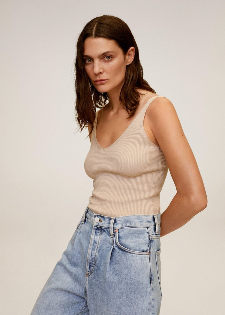Rib knit fabric. Tailored design. V-neck. Straps.