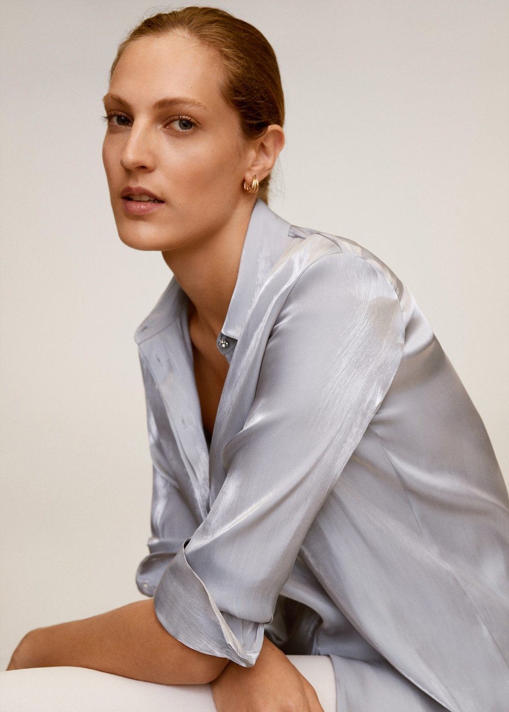 Satin. Classic collar. Long sleeve. Buttoned cuffs. Button up.