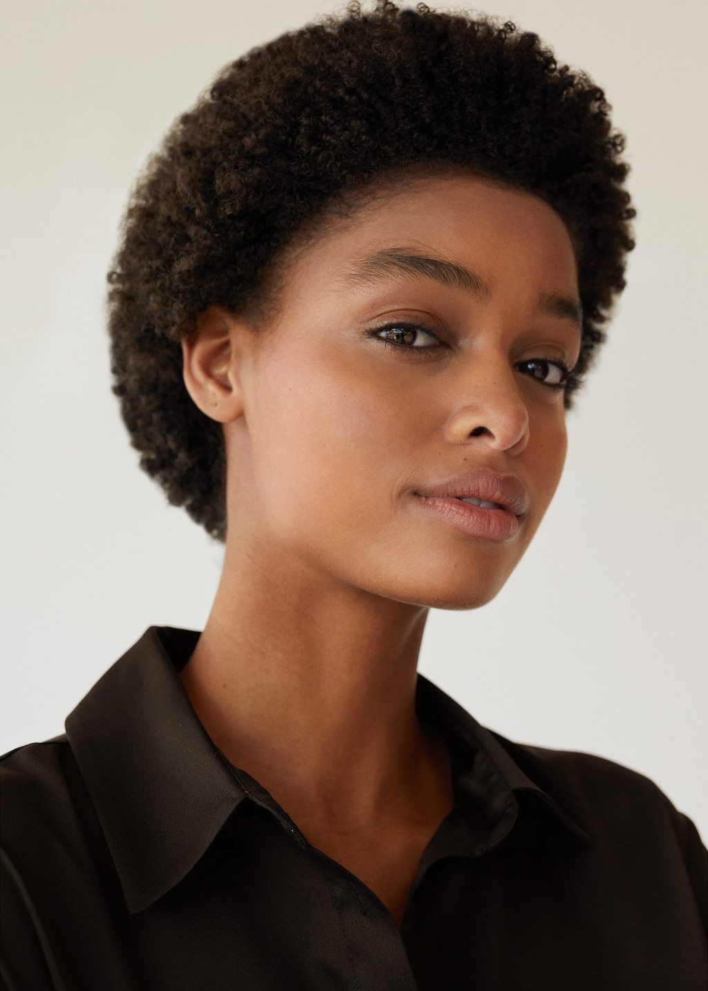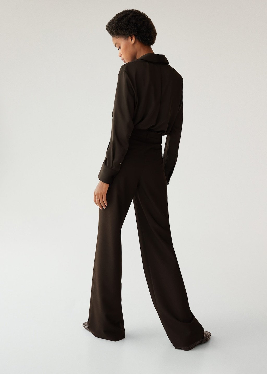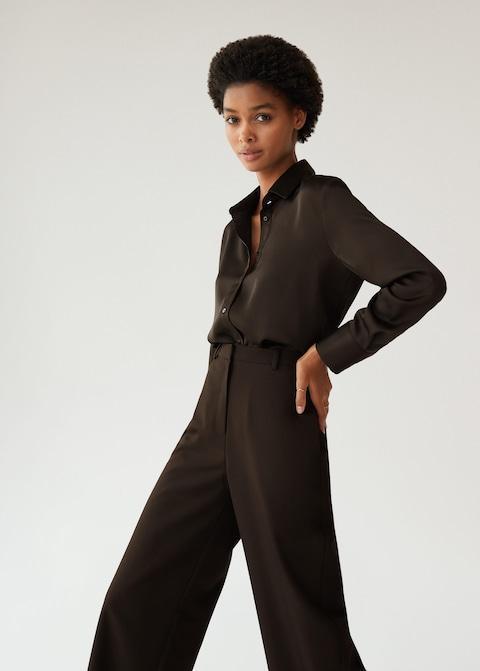 Satin. Classic collar. Long sleeve. Button fastening on the front section.