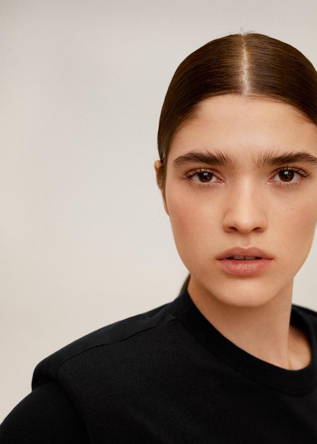 Online Exclusive. 100% organic cotton. Long sleeve. Rounded neck. Shoulder pad.