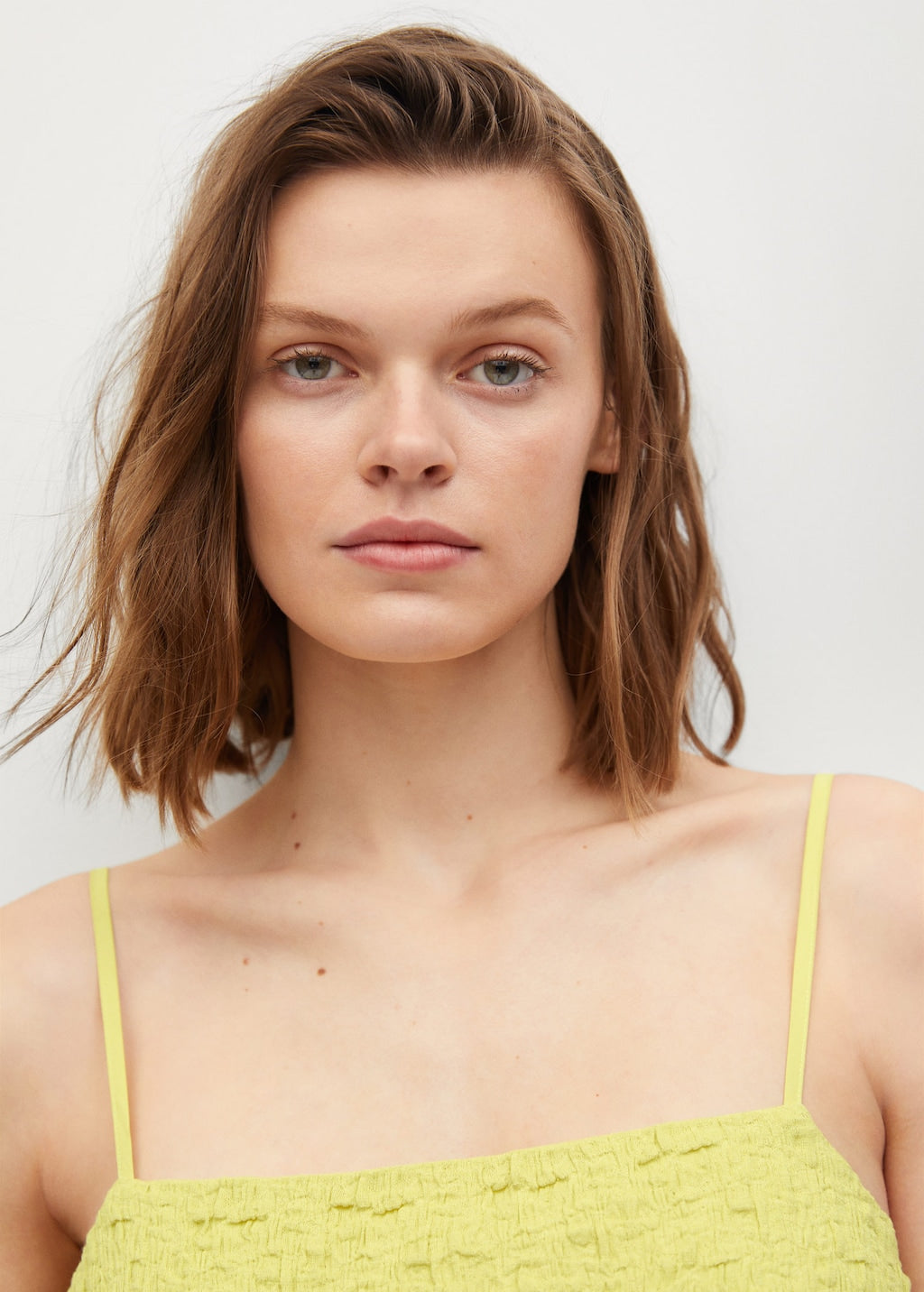 Committed Collection. Fabric with cotton. Textured fabric. Midi design. Flared design. Straight neck. Sleeveless. Evasé design. Crew neck. Thin straps. Lining only. Unclosed. Long design. Light fabric.