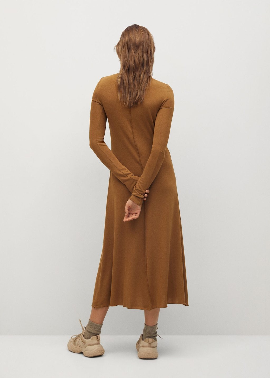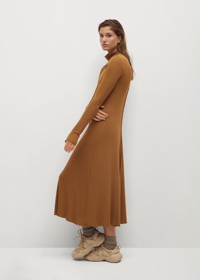 Knitted fabric. Midi design. Flared design. Turtleneck. Long sleeve.