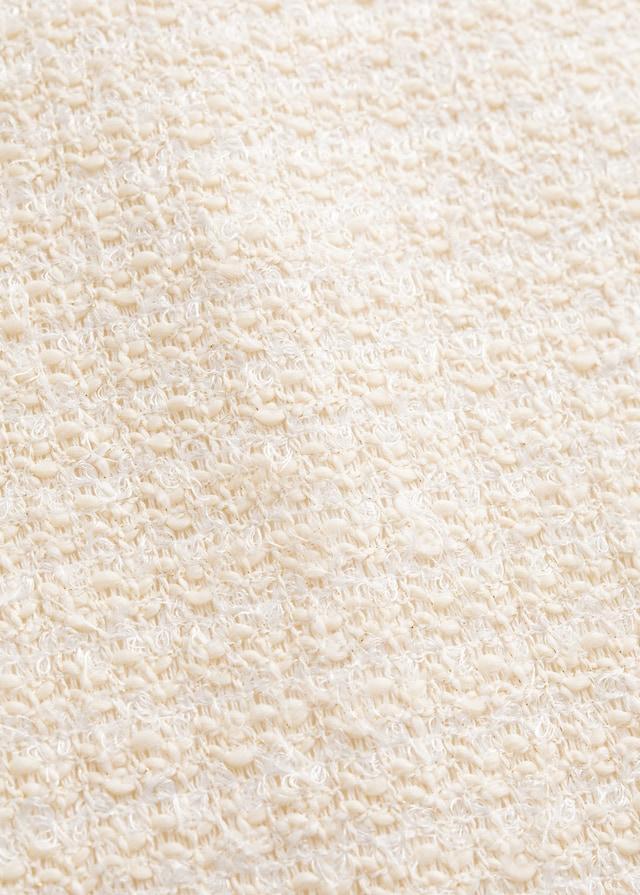 Fabric with cotton. Tweed fabric. Cropped design. Rounded neck. Puffed short sleeve. Button fastening at back.