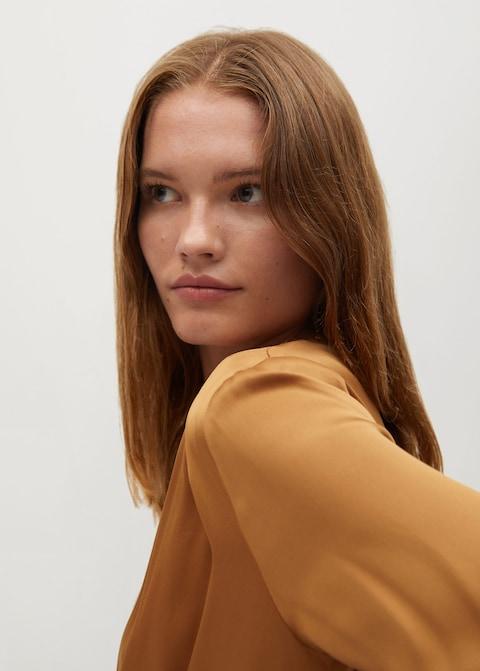 Satin. Flared design. V-neck. Long sleeve. Adjustable belt.